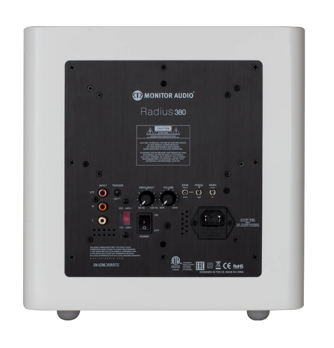 Monitor Audio Radius 380 Subwoofer features twin side-firing 8” C-CAM drivers; one active and one passive ABR. They work in tandem with a powerful 140W cool-running class D amplifier.